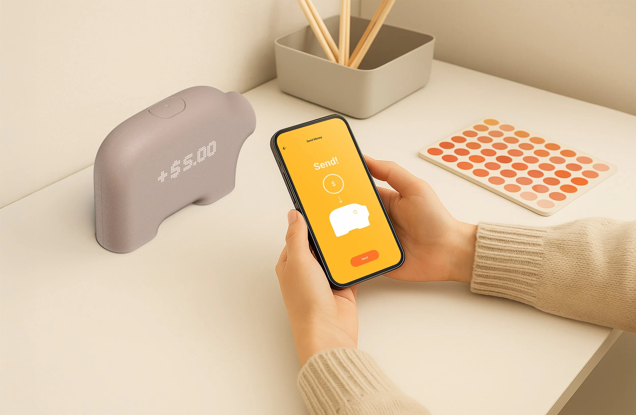 Piggy is part of the Design Good series at OwnKind—a smart piggy bank designed to help kids ages 5–12 build healthy money habits through everyday interaction with their parents.